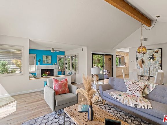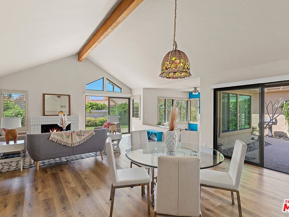 Welcome to a large home located within the guard-gated Silver Sands Racquet Club. This 2/bedroom/2 bath property provides 1,705 sq ft of beautifully updated premium desert living, with the value of a condominium but the feel of a detached townhouse. Enjoy the private courtyard entry to a desirable layout that includes open-concept dining and living, a step-down den, two fireplaces, wood laminate and tile floors throughout, and a renovated kitchen with stainless steel appliances. You will find plantation shutters throughout the home and the primary bedroom features built-in closets and storage with an ensuite with a dual vanity bathroom and a step-in glass door shower that allows for sunshine through the bay window. 2 car attached garage with direct entry into the home. Enjoy the quiet greenbelt view from the patio off the living room. This lovely property is only steps away from one of the 15 pools and spas. There is a fitness center, a small library, 8 tennis courts, and pickleball courts with a tennis pro on staff to be enjoyed within the private community. HOA includes cable and high-speed internet, exterior maintenance, and roof as well as outside gardening and trash pick-up. 2021 upgrades include a tankless water heater, kitchen and entryway remodel featuring ample storage, guest bathroom upgrade, new washer and dryer, and new slider doors. 2022 upgrades include roller shades for sliders and the front door and new double pane windows throughout the entire house. A new sprinkler system was added in 2023. It is located in close proximity to the luxury shopping and dining destination of El Paseo, Acrisure Arena, as well as the beautiful J.W Marriott Desert Springs Resort and the Desert Willow Golf Resort, where SSRC members play for reduced rates.