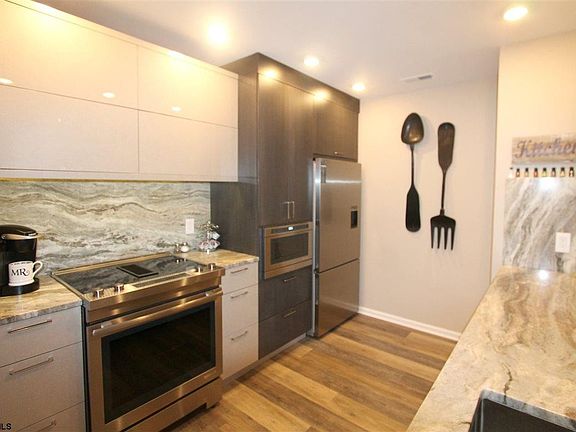 Chic Manhattan style living in the Village (of Linwood) - At a fraction of the cost!! Stunning high-tech kitchen with granite counters and backslash, automatic push button opening cabinets (ADVENTOS Lift Cabinets), downdraft electric cook top, push of a button opening microwave drawer, stainless appliances, flowing shelves and extra deep sink. Master Suite with vaulted ceilings, Balcony, and finished walk in closet. Both Bathrooms have been completed gutted and redone with top of the line everything, including Toto toilets, in mirror lighting, and more! Office could be converted back to a bedroom but why? This space is bright and wonderful with a walk in closet. Trendy & durable Core-tech floors, all new lighting through, new HVAC, cleaned duct work, and new glass doors are just some of the fabulous upgrades and fancy finishes that await the new lucky buyer! Every detail has been considered for style, comfort, and optimizing luxury! 2nd floor end unit boasts vaulted ceiling and plenty of natural light! This unit deserves your attention! Lets talk about the furniture - some can stay!