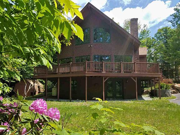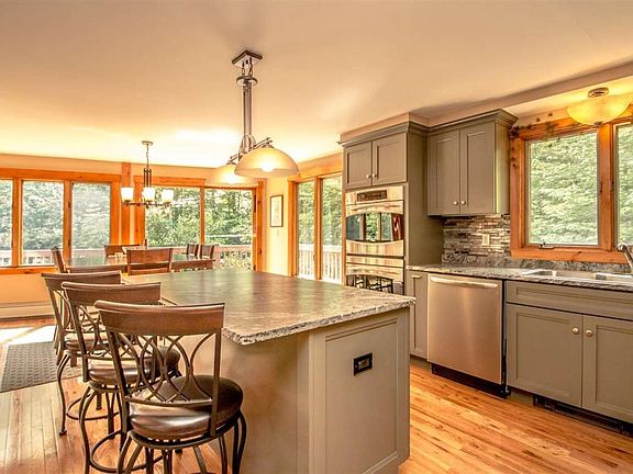 STUNNING CONTEMPORARY in Jackson, NH Remodeled 3 bedroom, Adirondack style chalet with many recent quality upgrades enhancing the spacious and fun layout and location. Cathedral ceiling in great room with windows galore for natural light and sliders onto the expansive deck. There is so much to love about this home with its beautiful interior warmed by beautiful hardwood floors, pine ceilings and natural trim and highlighted by a large center stone fireplace with wood beam mantle. Gorgeous custom kitchen w/ stainless appliances, leathered granite counters, center island breakfast bar, KraftMaid cabinetry w/ Whisper Touch and a large pantry closet w/ custom glass door. 1st floor master w/ tiled bathroom plus a first floor ½ bath laundry. Upstairs loft overlooks the great room and has two comfortable bedrooms w/ built in eave closets and share a full bath. Walk out family room w/ sliders and a gas stove on hearth provides loads of extra space for family fun. A large mudroom, a ski/workshop and a separate utility room plus a storage shed give you loads of extra space for hobbies and storage. Located on 1.2 acres w/ yard and small brook, just north of the charming village of Jackson and an ideal spot for Wildcat skiers and outdoor enthusiasts of all kinds to play where you stay. 2 miles from Jacksons many restaurants, quaint shops, golf, X-country skiing and year-round amenities and 10 minutes from North Conway village, all in the heart of the Mt Washington Valley.