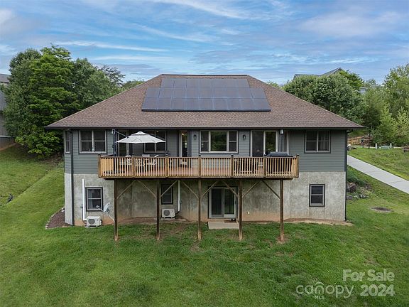 Located in Alpine Meadows, this contemporary home has lots of living space in a beautiful setting. Convenient to Weaverville shopping near Publix as well as downtown Asheville. Back yard is near small creek and adjacent to quiet farmland. There is a private office of primary bedroom. The main level has 2 full baths and 1/2 bath as well as a dedicated laundry room. Much of lower level is partially finished with plenty of room to create new space. It has a full bath, large bedroom and den with a large room used for music and lots of storage. The home is located in a cul de sac with lots of privacy. Spend time on the large deck and enjoy the mountain view. Recent updates include new paint in many areas including the exterior and the deck. Check out the spacious primary suite with large bathroom and a wonderful walk- in closet. Bring your electric car and plug into the level 2 car charger. Home also has passive solar panels and Spectrum high speed internet.