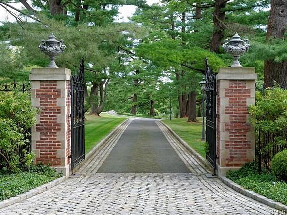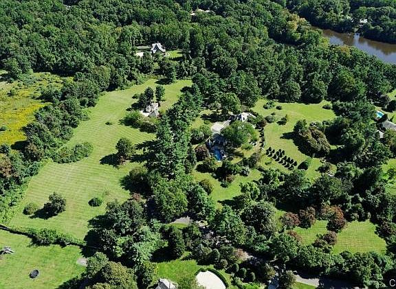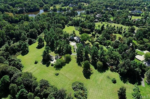 Featuring wide meadows and distant water views on a high setting, this level land is located at the end of a cul-de-sac off Round Hill Road. Lovely three bedroom renovated cottage on the property with two car garage. Current access through iron gates on a private drive. FAR allows for a large stately home.