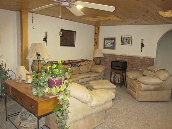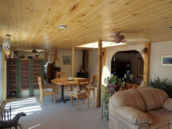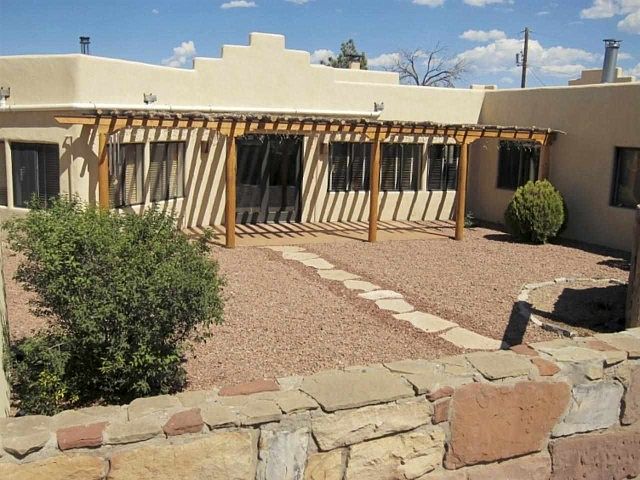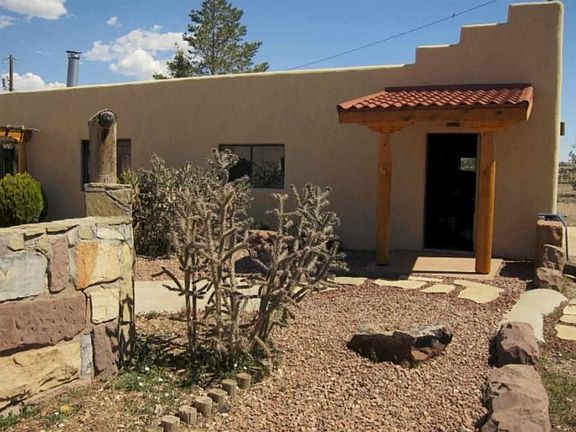 Spacious 4068+ sf 4BR/3BA home on 6.4 acres with Hermit's Peak views minutes from Las Vegas! Large eat-in country kitchen, light-filled great room with courtyard views, 2 master suites, guest quarters. Horses love Centaur fencing, 2 pastures, barn and 3 horse stalls. 2 fireplaces, 2 wood stoves, efficient propane-fired condensing modulating baseboard heating with 4 zones, and in-floor bathroom heating systems keep this home toasty. Two wells, one in use. Grid-tied 16-panel solar system pays you for generated electricity!