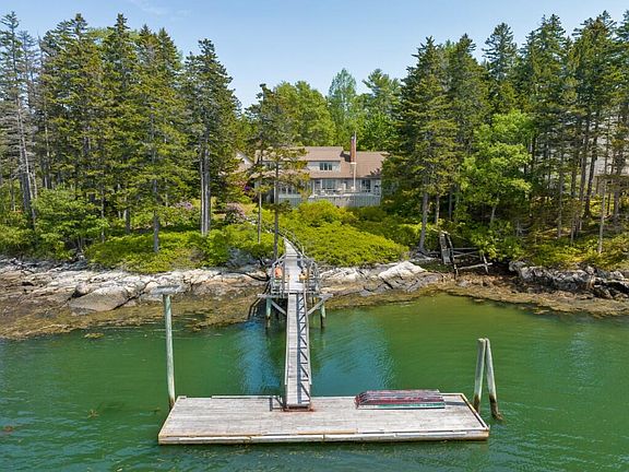 Located in the coveted Sawyer's Island community, this property has it all: sunset views over the Sheepscot; a deepwater dock with seating area, water & electric, a 40' float, and moorings; one-floor living and three ensuite bedrooms; a private guest apartment; a sun porch and open decks; a protected courtyard with stone walls and gardens; an attached garage and detached outbuilding; and more. Level, scenic, and thoughtfully improved, this property is ever-satisfying, inside and out, and within a neighborhood that features stone walls, dead-end roads, and water, all around.