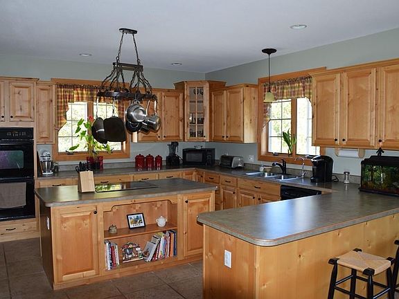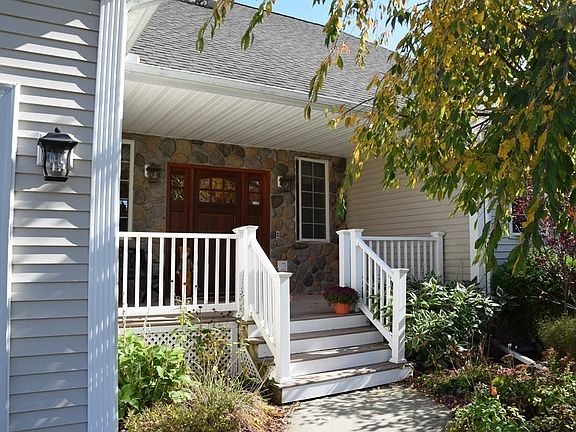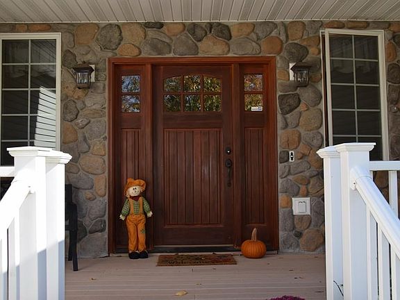 The appeal of this home does not stop at the curb--though this dead-end street has established trees, rock walls and plenty of appeal all on it's own. The home itself has stonework and a beautiful front entry door that catches your eye. Your guests will be impressed by the high ceilings and stone fireplace in the open living room that looks out to the large backyard deck. The kitchen is spacious and open to a dining area that also opens to the living room. Any entertainer or home cook will appreciate the double ovens, large island and counter space. There are wood floors in all of the bedrooms and plenty of natural light. If that isn't enough room for you, head on down to the finished walk-out basement that has plenty of windows. There is even a bar area and a pool table staying! The flat backyard is fenced and there is a double door shed remaining too. One floor living with all of the perks.