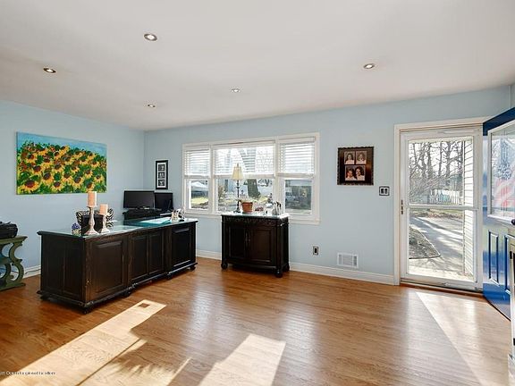 This 3 bedroom, 1.5 bath ranch features beautiful hardwood floors throughout. Entering the home you are welcomed by a large living room which flows effortlessly into the dining room. Eat-in kitchen boasts a center island. Enjoy time in the den with wood stove & sliders leading to the paver patio in the private fenced yard with storage shed. Each of the 3 bedrooms is large enough for a queen size bed & feature ample closet space with organizers. This home is nearby to shopping & dining. Just 20 minutes to the NYC Ferry!
