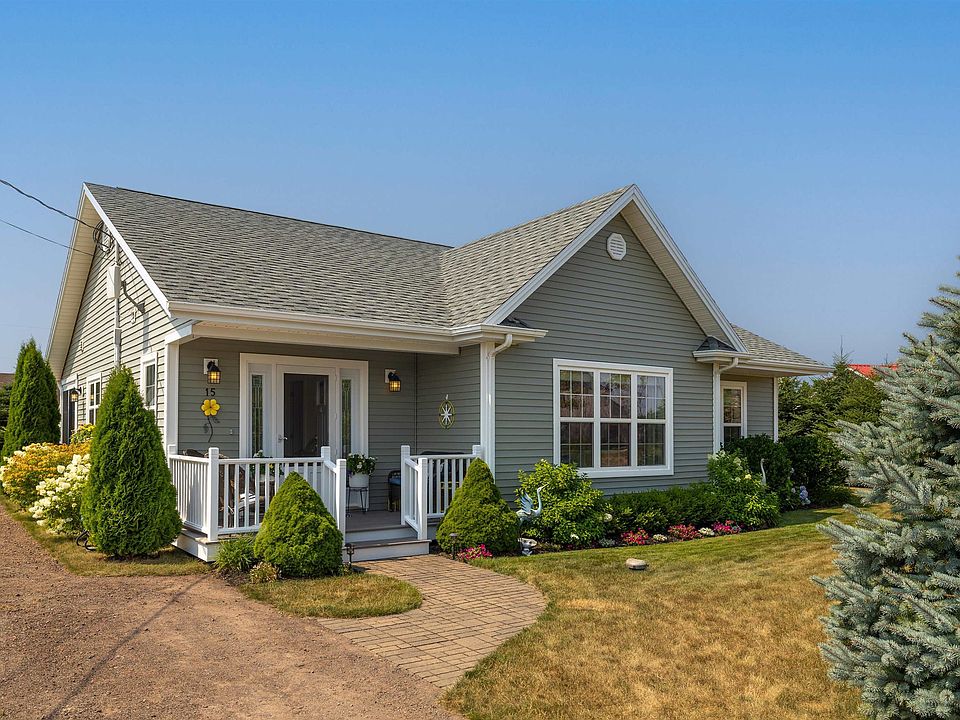 Welcome to 15 Alley Lane, a meticulously cared for and thoughtfully designed custom-built year-round home nestled in the highly desirable Lakeside community- just a short stroll to one of PEI's most breathtaking stretches of white sand beach. Step inside to a spacious entryway featuring a tasteful built-in and generous entry closet. The open-concept kitchen and dining room makes for easy entertaining, while the cathedral ceilings and architectural windows in the living room fill the whole space with natural light and character. From here, step into the west facing sunroom for afternoon and evening sun or out onto the back deck, which offers two distinct seating areas perfect for relaxing or hosting. The primary bedroom is a private retreat, complete with his and her closets and an exceptional ensuite bath. A second, generously sized bedroom easily accommodates visiting family and guests. Every detail has been thoughtfully considered- from the seamless flowing floorplan and abundance of light throughout the home, to the beautifully planned landscaping and attractive matching shed to the outdoor shower for rinsing off after a glorious day at the beach! Whether you're seeking a permanent residence or a seasonal getaway, this year-round home offers style, comfort, added details throughout, curb appeal and proximity to nature. Located just 5 minutes from The Links at Crowbush Cove Golf Resort, and steps from the serene shores of Lakeside Beach, this is coastal living at its finest. All measurements are approximate.