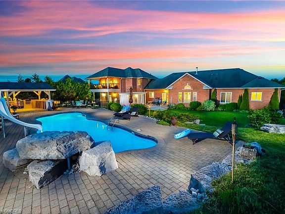 Nature lovers paradise. 3+4 bedroom bungalow, 5 baths, stunning stone and brick exterior bungalow with 2 acres north facing lot. 6+1 car garage. 2 bedroom in-law suite, elevator, stunning landscaping/gargens/pool/outdoor kitchen. Fabulous great room/kitchen/main floor office. Spacious mater with spa-like 5 pce ensuite. Huge entertainers basement with theatre/bar/gym/sauna. Separate 2 bedroom basement suite with kitchen, laundry and living space. This home is simply gorgeous. ***EXTRAS*** A no-commute lifestyle home, cottage life and separate areas for work/business in one location. 30 minutes to Toronto Airport, 15 minutes to 401, 10 minutes to Hospital and shopping. See feature sheet for more that this amazing home has to offer.