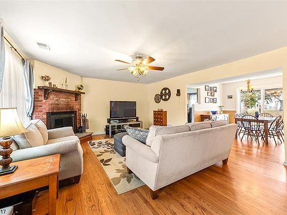 Welcome home to this lovely neighborhood cape with 4 BRs, 2 BTHs, open living and dining areas with sliding doors to paver patio. Enjoy the cozy wood burning fireplace and pretty, level yard! A great home for entertaining and enjoying! Wonderful neighborhood setting close to schools, shopping, dining and commuting. Nicely sized rooms, beautiful hardwood floors, stainless appliances, separate laundry room and butler's pantry area. City water, sewer, and CAC. Super curb appeal, a must see!