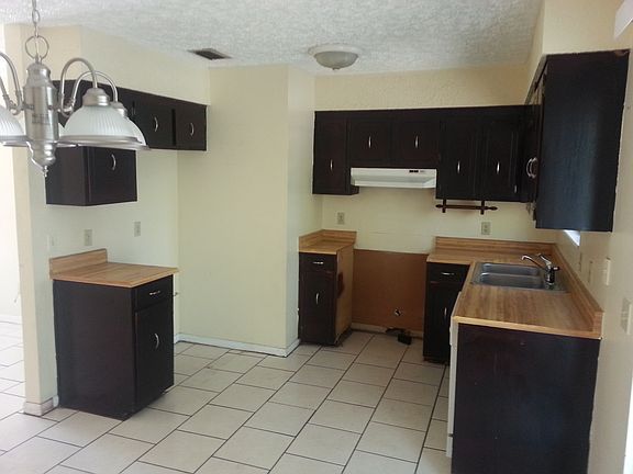 This pristine Florida cottage has been meticulously renovated. Plenty of recessed lighting lends to the open, airy feeling that is evident the moment you walk in the beautiful front door. The large living, dining, kitchen combo room has gorgeous vinyl planked flooring, crown molding, and a tongue and groove accent wall. A custom-built kitchen island covered with a gorgeous butcher block countertop gives lots of extra work space. Shaker cabinetry is accented with copper handles that complement the sparkly quartz countertops. In the guest bath, subway tiles surround the tub with a nook that matches the stylish floor tiles. The Master bath has a stunning walk in shower with a rain shower head, and a flat river stone floor. A large privacy fenced backyard comes complete with a wood- fort