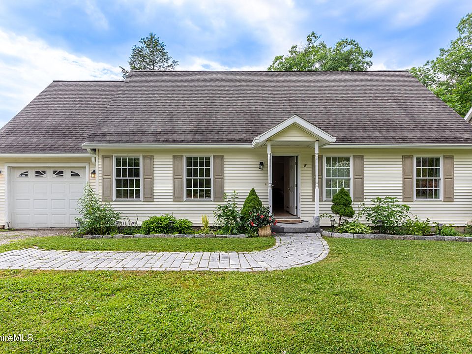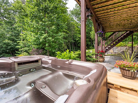 An extraordinary, 9-room, custom-designed Cape. 1st floor w/ 2 spacious bedrms, full bath, kitchen w/ breakfast bar, dining area, living room and sliding doors to a large deck w/ beautiful seasonal expanded view of Bousquet Mountain. Mostly wood floors of hickory and bamboo. Primary suite encompasses the entire 2nd floor floor, with a gorgeous spa shower, living room, bedroom, sitting area, walk-in closet, mini split. Lower level is complete with a large bedroom, spacious family room, full bathroom with full size laundry units, and sliding doors to a hot tub and stone patio.