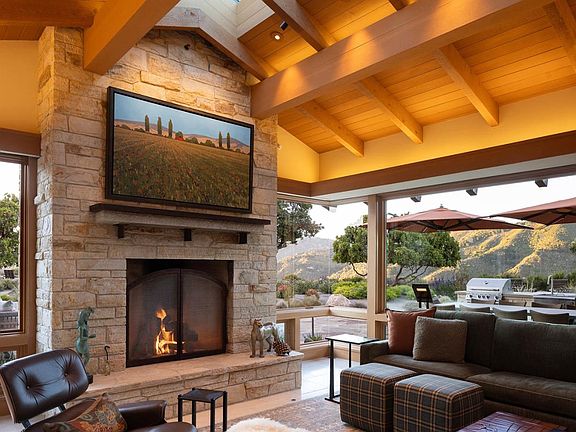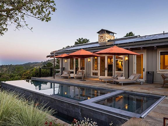 Welcome to this stunning California Modern home artfully designed by award-winning architect David Martin, set on an immaculate 6.1-acre estate within the exclusive gated community of Tehama. Seamlessly integrated into the natural surroundings, this Silver LEED Certified residence spans 8,199± square feet, offering a luxurious retreat just 8 minutes to downtown Carmel. Enjoy breathtaking views of Carmel Valley and the ocean from almost every angle. This exceptional property features a main house with four bedrooms, an elevator, a billiard entertainment area, wine cellar, and a connected guest house with its own full kitchen. The open-concept design invites the outdoors in, with expansive entertaining spaces enhanced by a swimming pool and hot tub overlooking Carmel Bay, fountains, a fire pit, an outdoor kitchen with a fireplace, bocce court and a serene rose garden. Natural light pours through ridge skylights and floor-to-ceiling corner windows, highlighting the exquisite designer finishes throughout. Ideally located just 4 minutes (0.8 miles) from the Carmel Valley gate, this property is a stunning masterpiece that exemplifies the seamless blend of architectural brilliance and the natural beauty of its surroundings.