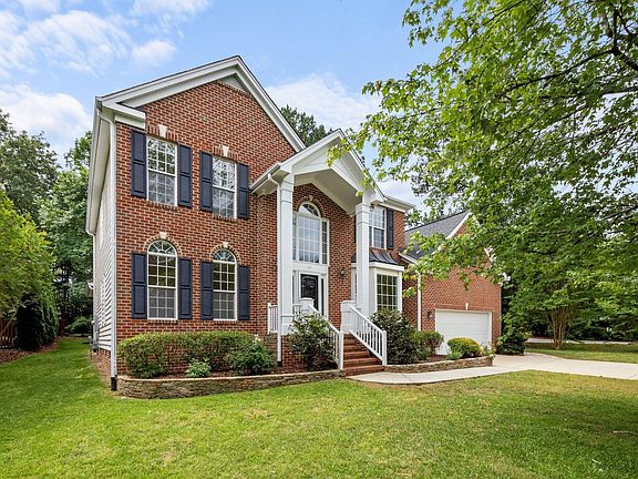 Welcome to this meticulously cared-for home nestled on a stunning cul-de-sac lot in the highly sought-after Fairfield neighborhood. With approximately 3,400 square feet, 5 spacious bedrooms, and 3.5 bathrooms, this home is move-in ready and full of potential for your personal touches. Inside, you'll find fresh interior paint, brand-new carpet, and stylish luxury vinyl plank flooring. One of the standout features is the all seasons sunroom, complete with EZ Breeze window system, elegant tile flooring, and a vaulted beadboard wood ceiling—perfect for year-round enjoyment. Step outside to discover a grilling deck, two flagstone paver patios, and a serene waterfall with ambient night lighting. The expansive, lush backyard offers a tranquil retreat and some of the best birdwatching around. The interior layout includes an office and dining room at the front of the home, while the kitchen is positioned at the rear, overlooking a large living room with a woodburning fireplace and double doors leading to the sunroom. Beautiful hardwood floors flow throughout the formal areas, kitchen, breakfast nook, and hallways. The kitchen boasts a center island, generous breakfast area, built-in bill desk with cabinetry, a butler's pantry, and ample pantry space. A spacious laundry room on the main level includes a utility sink and abundant storage. Choose between front and back staircases to access the second floor. Upstairs, the primary suite features a tray ceiling, a luxurious en-suite bathroom with a soaking tub, separate shower, double vanities, private water closet, and walk-in closet. Three additional bedrooms share a hall bath, while a private fifth bedroom with its own en-suite bath and walk-in closet is perfect as a guest suite, playroom, or home theater. Additional highlights include a two-car garage and access to Fairfield's fantastic amenities: community pool, tennis courts, and miles of scenic walking trails. All of this in an unbeatable location just minutes from RTP, RDU, shopping, dining, and more.