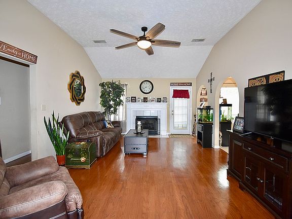Vinyl siding home with attached garage. Nice private backyard with wood privacy fence and landscaping. Eat in kitchen, hardwood floors, fireplace.