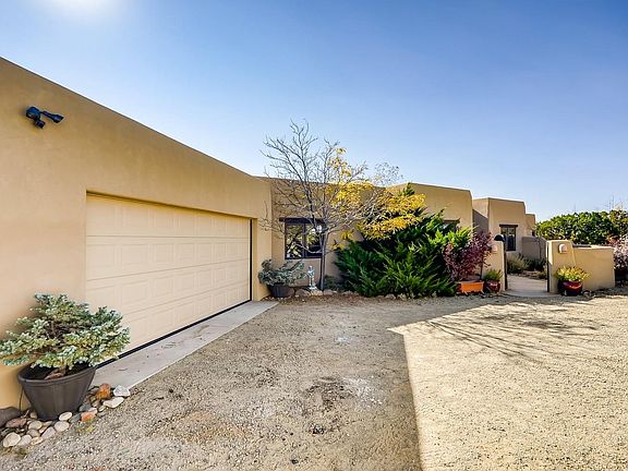 Lovely custom designed and built by Bob DiJanni this home resides in this quiet Ladera area of Eldorado. Sweeping sunset and mountain views welcome you through living room windows on entering a gracious foyer. Graceful tall arches draw one through the great room to dining and kitchen on one side and to separate owners suite on the other. The kitchen has been delightfully refreshed into a fun entertainers cooking experience. There is an office as well as 3 bedrooms and two full baths plus extra half bath for visiting guests. A lovely shady portal from both living room and owners bedroom looks out onto mature luxurious walled gardens with a rock waterfall the birds enjoy. A privately walled entry courtyard and portal look to the Sangre de Cristo foothills for shady summer enjoyment. Enjoy the Eldorado pool, tennis, adobe clubhouse, parks, trails and more, only minutes to local shopping, community services and into Santa Fe