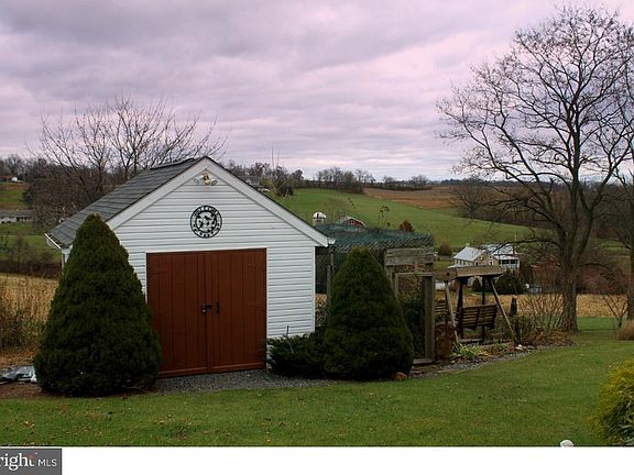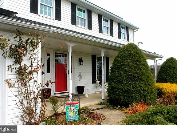 Travel down the finest street to the end at the cul-de-sac and you'll find this lovingly cared for by original owner, Paul Moyer built, 2 story home with a backyard paradise and jaw dropping views of preserved farmland. Your heating and electric bills will be virtually peanuts with solar-electric generation with reverse-spin electric meter ? selling solar energy to Med Ed. This beautiful home sets on 1.05 acre. Kitchen has been updated - granite counter tops, stainless steel appliances, knotty pine ceiling, ceramic tile flooring, 2 pantry closets. Kitchen opens to a spacious family room w/brick hearth. The connecting sun room is bright & cheery with wood pellet stove & outside entrance. There are 4 Bedrooms, Master BR has walk-in closet. There are 3 full baths ? 2 upstairs, 1 downstairs. The laundry area is on first floor. A full finished basement adds additional living space with large utility room housing heat pump, new hybrid water heater, water softener & shelving. Spacious attic for storage with flooring, R60 insulation; whole house fan & 2 solar powered attic fans. Ceiling fans thru-out. Home has all new low energy windows. 7 yr old roof with 35 year architectural shingles. Square footage of home is 2600 not 2400 as stated in pubic record. Propane line to gas grill. Imagine having your own green house! Large storage shed with part being a chicken coop. The back yard has a pergola with yellow & red trumpet vines, clymatis & honeysuckle. Wood burning fire bowl. Incredible perennial plantings include a huge peony bed, rose bushes, exotic lilies, tulips, iris, Shasta daisy, butterfly bushes, different types of hostas. Trees include dwarf lilac, red bud, weeping cherry, pin oak, burning bushes, Kwansan flowering cherry. Owners are building a new home in Florida - closing to be coordinated with the finish of their new home.