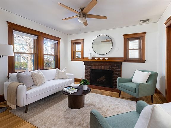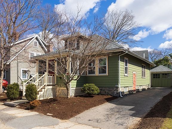 Nestled on a dead-end street in the sought-after Pondside neighborhood of Jamaica Plain, this delightful Bungalow exudes charm and comfort with versatile living spaces and two-plus bedrooms. The layout is lovely and features a living room with a brick fireplace, French doors opening to a flexible den/office area that can effortlessly transition into a third bedroom, and a separate dining room with a built-in china cabinet. The eat-in kitchen, appointed with soapstone countertops and stainless-steel appliances, overlooks the private yard and garden. A bedroom and bathroom complete the first level. The second level offers a sun-filled staircase with skylights that lead to a full bedroom and bathroom. Further enhancing this property are front and back enclosed porches, detached garage, and recent updates including refinished hardwood floors, a fresh coat of paint, and a 2024 roof. Fantastic location close to Centre Street, shops, restaurants and transportation.