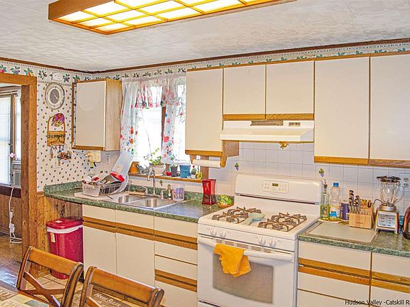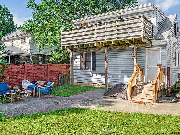 This Kingston City Cutie is perfect for living the easy life. Just the right size! Enter this charming Bungalow through the little foyer and into the big living room with hardwood floors running throughout it. The Eat-in Kitchen is spacious with plenty of cabinet & counter space and a door leading you out to the backyard. There are two bedrooms on the main floor, located on opposite ends of the hallway and a full bath in between. Upstairs is the large master bedroom with a balcony overlooking the backyard. Perfectly located, conveniently close, to The Kingston Rondout, Uptown and shopping centers.