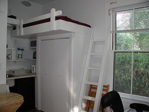 FURNISHED STUDIO; 1st floor with twin bed. RENT INCLUDES: All utilities, heat, AC, hot water high speed internet, wifi, share use of washer & dryer. Furnished Room/ Studio, Cambridge, MA. All utilities (heat, AC (Mitsubishi) electricity, hot water; cable internet; wifi).Broadband internet, WIFI, DVD/ Shared use of clothes washer and dryer. Shared use of garden, yard, outdoor gas grill. Includes sheets, towels, quilt covers, full set of kitchen utensils, pots, pans, cutlery, silverware, vacuum cleaner, furniture, book shelves. LOCATION On quiet and attractive side street, Walking distance from parks and many restaurants; grocery stores. Porter Square subway (Red line) & shopping center, 4 minutes by foot. Porter Exchange restaurants, 2 minute by foot. Harvard Square/ University, 1 subway stop away or 15 minutes by foot. MIT/ Kendall Square Subway, 15 min by subway. 20 minutes to Park Street subway station (downtown Boston) FEATURES" Hardwood floors, lots of daylight, cross ventilation, overhead fan Private entrance to house. Private full bathroom. Mitsubishi Air Conditioning (heat pump). Studio has two large windows for light/ fresh air. WORK SPACE INCLUDES: Broad-band internet cable & WIFI; White Formica desk, under-desk file cabinets. Ample book shelves; Ergonomic swivel chair. LIVING AREA INCLUDES: Loft Bed; Broadband video cable and Color LCD display TV/ Computer Monitor & DVD player; printer/ copier/ scanner; Small butcher block dinning table and chair; closet space. KITCHEN AREA INCLUDES: Kitchen aluminum sink with spray faucet and stone counter top; Butcher block table; Refrigerator (27 inch high under counter) and shared use of large freezer. Two burner induction cook-top; Microwave, toaster ovens, but no stove. Kitchen utensils, equipment, cutlery, including: rice cooker, electric tea kettle/ coffee pot, tea pot, espresso maker, electric frying pan, blender, crock-pot, & much more. BATH: Shower, sink, medicine cabinet, toilet, window and fan vent, storage shelves. Includes full utilities, heat, hot water, internet, wifi, shared use of washer& Dryer. Require last month rent & 1 month security deposit. No smoking. No pets.