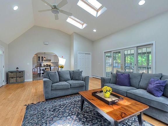 A beautiful, well maintained and updated cape with an open concept living area. As you enter, you are welcomed into a large family room with hardwood flooring, cathedral ceiling, skylights and sliders that lead to a peaceful screened-in 20x12 back porch that overlooks your large flat fenced-in backyard, 19x15 patio, swing set and storage shed. Updated kitchen with tiled flooring that leads to a dining room with hardwood and plenty of natural sunlight. Just down the hall is a front-to-back, warm and cozy living room with an efficient wood burning stove and hardwood flooring. 3 bedrooms, all generous size and all on the 2nd level. 2 full baths both recently updated. Unusually large lot for this well sought after Lost Lake section of town. Short distance to the public, no fee, Sargisson Beach as well as the private only a $25 annual fee, Baby Beach. At both beaches enjoy swimming, boating, fishing and more. Septic is an approved 4 bedroom design so there is room for future expansion.