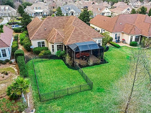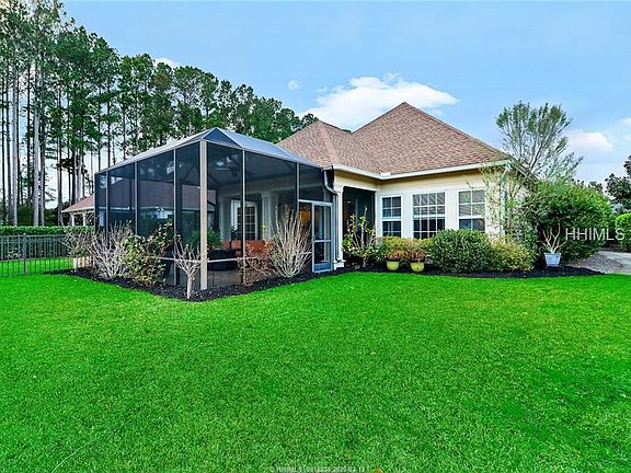 Welcome home to 15 Ashford in Hampton Hall. Checks all buyer requirements: open, one-story floor plan, mature landscaping, fenced yard, lagoon view, wood floors, no carpet, split bedroom plan w/600-foot custom tiled screened lanai & quiet cul-de-sac. Current upgrades include: master custom closet & bath remodel, half bath has new quartz & fixtures, HVAC replaced in 2018. Garage large enough for golf cart + two cars. Premier location, only minutes to Old Town Bluffton, downtown Savannah, & Hilton Head Island beaches. Hampton Hall is a gated community offering residents tennis, optional golf membership, gym, indoor & outdoor pools, clubhouse.