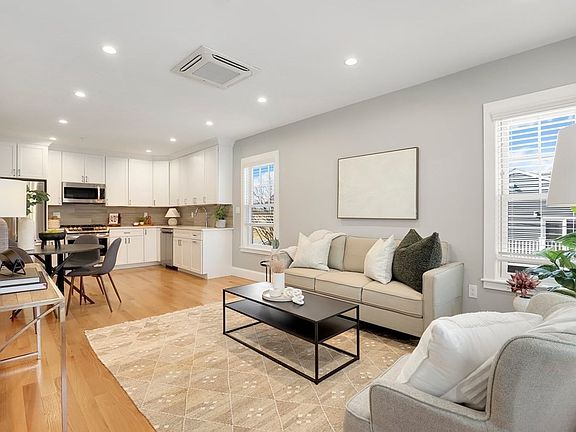 Welcome to this stunningly gut renovated unit in the hidden gem of Dorchester's Clam Point neighborhood. This upper bi-level unit has been completely gut renovated and features 3 bedrooms, 3 bathrooms with 2 primary suites, an open floor plan filled with natural light, and quality finishes throughout. The kitchen is equipped with white shaker cabinets, stainless steel appliances, tile backsplash, under cabinet lighting and stone counters. Other luxurious amenities include a large deck perfect for outdoor entertaining, 2 off-street deeded parking spaces and four separate zone ductless mini-split heat and A/C systems – all that you need to enjoy comfortable living in style! Plus, high ceilings throughout allow for great airflow while beautiful hardwood floors add warmth to the space. With energy efficient Harvey Windows offering views of the large landscaped common rear yard and easy access to redline T stop, parks, shopping centers & highways.
