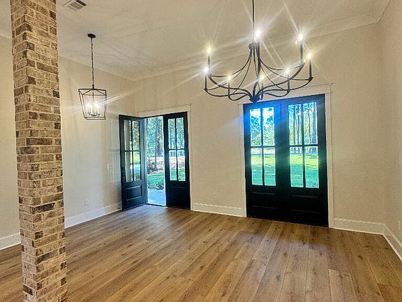 New construction with a gorgeous open floor plan, 4 bedrooms, and 3 full baths in The Trace! This home features a spacious great room with 12' ceilings and gas log fireplace, separate formal dining and breakfast areas, a huge work-in pantry with counter space, and an oversized laundry room with ample storage and full size sink. The private master suite includes a custom tile shower, soaker tub, his/hers vanities, and a well designed walk in closet. The kitchen features a full GE Cafe appliance package, custom cabinetry, and tons of natural light. Enjoy views of the lake from the front porch, and entertain guests on the covered back patio overlooking the back yard. Situated on a beautiful corner lot!