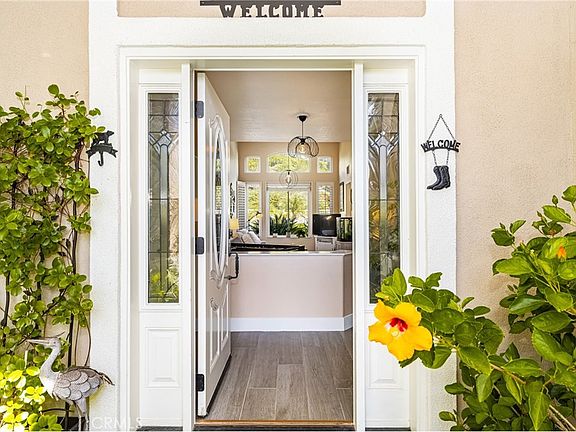 Live the Southern California lifestyle you dream of with a one-of-a-kind location and a breathtaking backyard oasis. The backyard features a spectacular pool, spa with lazy river concept, firepit, 7-hole putting green, BBQ, bar, and patio area, ideal for outdoor living and entertaining. You are sure to enjoy this private lot at the end of a quiet CDS street backing to a tree-filled greenbelt slope where you hear the sounds of songbirds in the morning and the hooting of owls at night. This highly upgraded home is the crown jewel of Lyon Hills. This stunning model home offers 4 bedrooms, 3 baths, and a spacious loft/media room that could easily be converted into a 5th bedroom with 2,488 sq ft of comfortable living space for everyone. You are sure to be captivated by these custom appointments which include: plantation shutters, crown molding, high baseboards, vinyl windows, new tile flooring, remodeled bathrooms, built-in closet organizers, seller-owned solar, mirrored wardrobes, vinyl fencing, ceiling fans, and epoxy coated garage floor with loads of storage. An expansive kitchen boasts an oversized island, Corian countertops, stainless steel appliances, a vented hood, a pantry, and a breakfast nook. The coveted main floor bedroom and full bath are ideal for out-of-town guests. The primary suite features high ceilings, walk-in closet, and a newly remodeled bathroom. This home also has spacious secondary bedrooms and a convenient upstairs laundry room with sink. Hurry, homes like this rarely come on the market!!