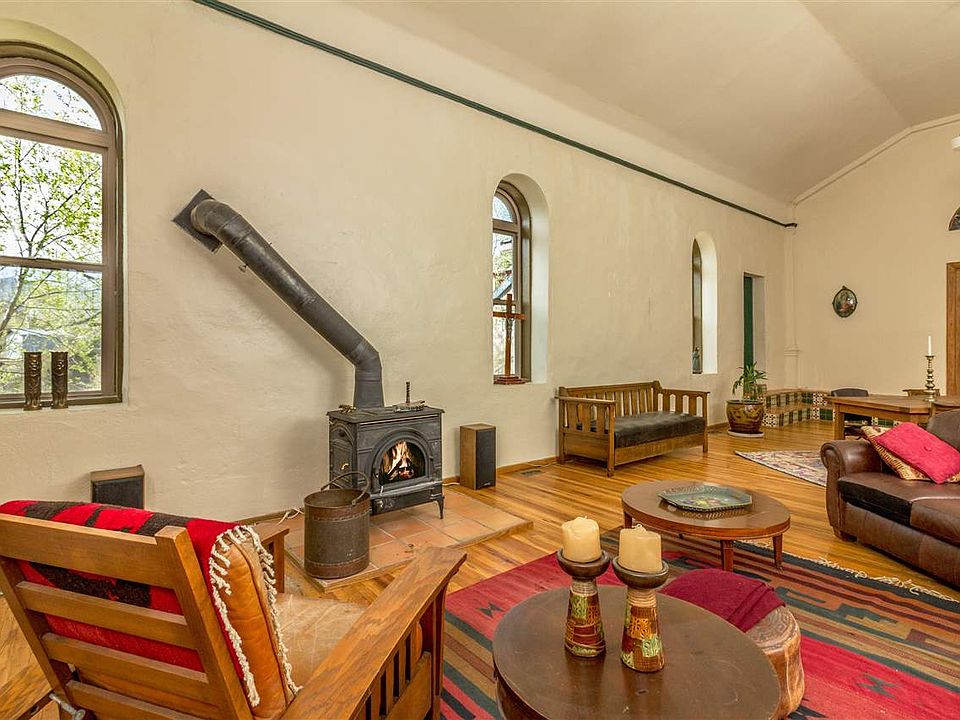 Iconic, Artistic, Eclectic. All words to describe Madrid and this home. A former church behind downtown Madrid. This home is unique and spacious, close to activities in Santa Fe and Albuquerque. The property sits on 2+ acres and is on city water. There is a Casita and a Sauna. Large expansive views define this home set in the Ortiz Mountains.
