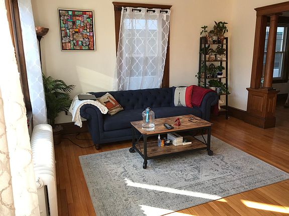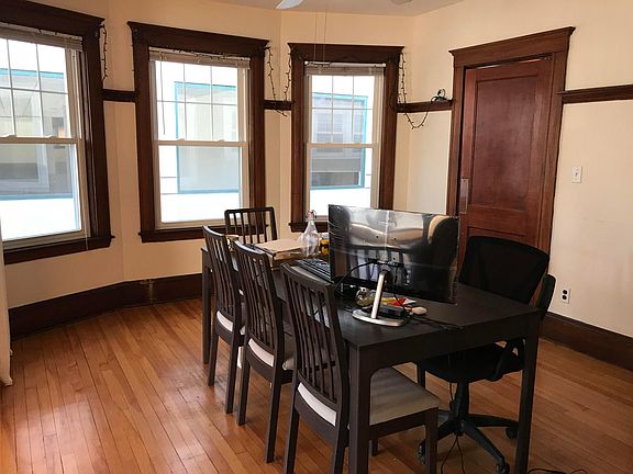 Awesome 2.5 bedroom with hardwood floors throughout. Full dining room, sunny living room, bonus office and two large bedrooms. Kitchen features dishwasher, gas cooking and plenty of storage including large pantry. One off-street parking space is included in rent. This is a top floor apartment that gets great light! Private deck and lots of extra storage. Amazing location near public transit, major highways, shopping, trendy restaurants and much more. Avail July 1st. Tenant pays gas electric and water/sewer. First, Last, Broker Fee due at signing.