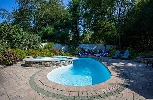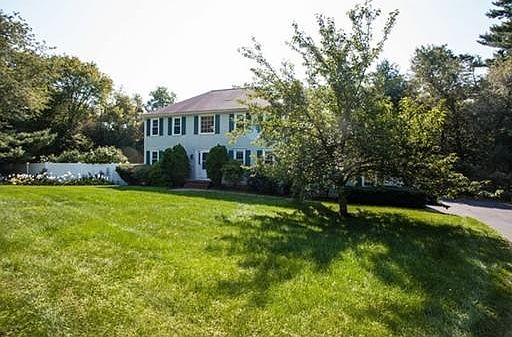 Best of both worlds!!! A beautiful home in the center of town, close to schools, shopping and commuter access, but located down a quiet lane on a very private cul-de-sac. Have your own resort in your back yard with heated, saltwater in-ground pool and spa and outdoor gas kitchen surrounded by professional landscaping and stonewalls. Well-maintained center-entry Colonial with attached two-car garage, three large bedrooms, 2.5 updated baths, and finished basement. Three-season sunroom, hardwood and ceramic tiled floors, newer energy efficient windows and roof! For room dimensions see attached floor plans. Buyer responsible to verify all dimensions.