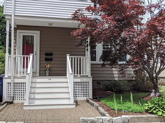 Beautiful sunlit first floor unit available September 1st. This 2 bed, 1 bath apartment is centrally located on a quiet side street. Close to commuter rail and highways. Unit features hardwood floors, in unit laundry and large windows along with a cozy front porch and shared backyard area.