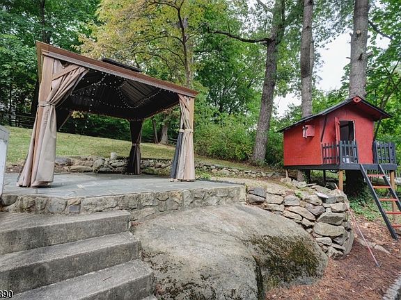 A bright and airy custom home, perfectly positioned to offer a vibrant lifestyle in the highly desirable Mountain Lakes community. The inviting entry leads to a sunlit family room, with a wood-burning fireplace, which flows seamlessly into an open-concept layout. This elegant space combines the kitchen, wet bar, living room, and a dining room adorned with high ceilings and gorgeous light fixtures. The chef's kitchen is a highlight, boasting a large center island, stainless steel appliances, and abundant cabinetry. Retreat to a first-floor primary suite, complete with a private den, a spacious stall shower, and a dual vanity. Upstairs, three additional well-proportioned bedrooms and two elegant bathrooms provide comfortable living space. The finished basement expands your living space with a fireplace, a cedar closet, and a full bath, offering exciting potential as a home theater, gym, or playroom. Outside, entertain in a private backyard featuring a fantastic tree house and a luxurious patio gazebo. Enjoy unparalleled closeness to top-rated schools, community lakes, and easy access to major highways, NYC commute.