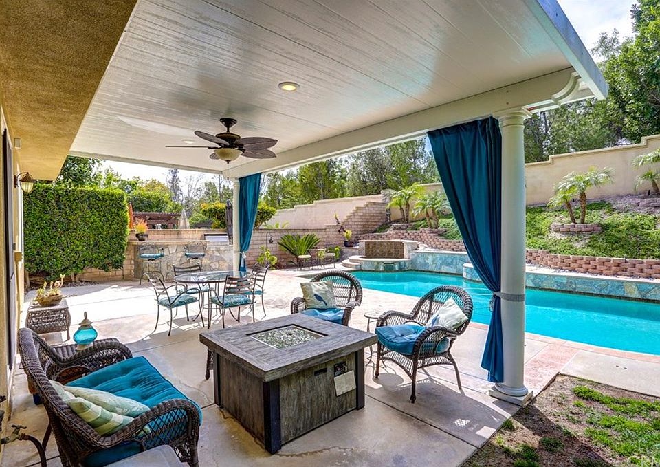 Stunning Home In Guard Gated Community of Dove Canyon. This Private Pool Home is in Immaculate Condition, with an Open Floor Plan, Tons of Upgrades, a Three Car Garage and a Downstairs Bedroom and Remodeled Bath! Beautifully upgraded kitchen with stainless steel appliances, gorgeous granite covered counters, a large kitchen island and a view of the pool and spa from the kitchen window. (Quiet and Secluded) Great location toward the end of a quiet, cul de sac street and backing to very small hill. No Rear Neighbors **backs To Horse & Jogging Trails, Resort Style Backyard With Pool & spa, and Built-In BBQ, Great For Entertaining! Upgrades include cozy fireplaces in living room and family room, lots of natural light poring through windows on top of windows, high ceilings, plantation shutters, crown molding, high profile base boards, two whole house fans, and a jetted tub in the master bathroom. In addition to that, there is a spacious bonus room/loft at the top of the stairs. This is Truly a Showplace Pool Home!