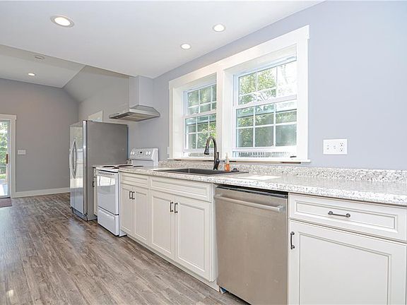 Great space in this Cape located in the heart of downtown Warren. Deck overlooking large backyard with a two car garage and tons of parking. This home has many updates including new kitchen with dining area, large new bath with walk in shower, 3 bedrooms, electric updated, and laundry on first floor. Possible expansion on the second level for an additional 2 bedrooms if desired. Walk to restaurants, shopping, on bus route and a couple of blocks to the water.