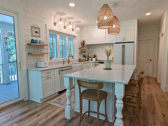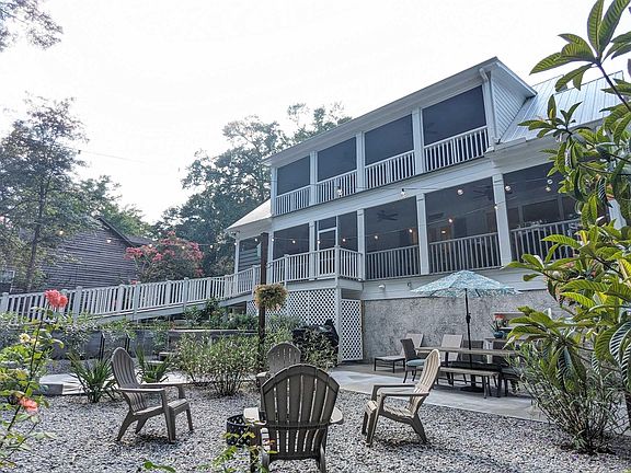 Welcome to the beautifully designed 2022 Coastal Luxury Cottage energy star rated with a Generac whole-house backup generator with an automatic transfer switch. No HOA's, SHORT TERM RENTAL PERMITTED, Full Class A RV Hookups, Boat Storage with Hagley Public boat launch into Intracoastal Waterway in walking distance. The entire exterior of this home is an ISO-4 or above rating with all concrete, PVC and metal exterior surfaces. Also, the developers took full advantage of the rarity of this .54 acre lot, sitting against some of the last protected Cypress Wetlands in North America. Enjoy the 180 degrees of private protected views from Family Room with an amazing Isokern Standard 42 inch wood burning fireplace with Charleston brick and from the beautiful dining room. Look out the large picture windows with abundant views and wildlife; Such as, Barred Owls, Pileated Woodpeckers, Fox, Coyotes, Bald Eagles, Cardinals, Blue Birds and much more. Positioned in a historically and unique area which was once part of the original Heritage Plantation man made stage coach entrance through the back creek. This ICW tidal creek can be accessed by Kayak from the back portion of the property. Also, allowed through the Army Core of Engineers is a dock permit to help easily access the deep water of the creek out back and enjoy a paddle into the Intracoastal Waterway, see picture. This construction project is highlighted by 20 plus years of real estate, new construction and interior design experience by the developers. The property received its Certificate of Occupancy in 2022 with recent improvements for final completion were just made in 2023 with upgrades to the landscaping and other home features like 1st floor guest suite and theater room. The attention to details and choice of materials will be greatly appreciated to the discerning eye. 3100 sq ft of heated and 1400 sq ft of 3 separate screened in structural porches and golf cart garage - Perfect for Southern Living and making this a total of 4500 sq ft covered. 3 bedrooms with their own on-suites and 2 non-conforming bedrooms one with a kitchenette. Here is a list of some of the features: Isokern wood burning brick fireplace with solid wood floating mantle, clear Pine ship-lap throughout, solid wood beams, James Hardie cement siding, engineered foundation with pumped cinder block/re bar and slab foundation, eco-friendly fiberglass insulation, Trex decking on all 3 covered and screened porches, metal roof/fascia, concrete soffit, 400 amp electrical service, underground utilities, full RV hookups for Class A motor home, large boat and/or equipment parking, golf cart garage parking and workshop, whole house Generac backup generator with 400 amp automatic transfer switch, fountain, arbor, 9 fruit trees and 18 berry bushes, a beautiful rose garden, 3 screened in porches, LTV flooring, designer kitchen with GE Cafe Series smart appliances, bi-fold designer kitchen window that opens up to back deck bar counter, 4 smart outdoor security cameras, large 3 window-pane slider to back covered porch indoor outdoor living, commercial rated hood vent duct, gas stove, island with beverage center, 500 gallon buried propane tank, solid Oak treads and Oak hand railings, walk-in pantry with appliance quartz counter, separate laundry room with storage closet, solid counters throughout, dual sinks in main bath with separate tub and walk in shower, main bedroom walk in shower has slider to access outdoor shower too, 3 bedrooms with on-suites, each bedroom has direct access to one of the 3 porches, guest and/or in-law room with kitchenette, theater room with professional surround sound and smart projector, tank-less propane water heater, all 3 levels have their own HVAC zones and much more. This low maintenance home would also make a great 2nd home or excellent short term vacation rental. Come home to a peaceful and private location close to it all.