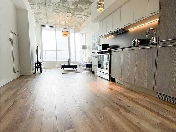 This is a 2 bedroom, 1.0 bathroom, condo home. This home is located at 15 Baseball Pl #805, Toronto, ON M4M 0E6.
