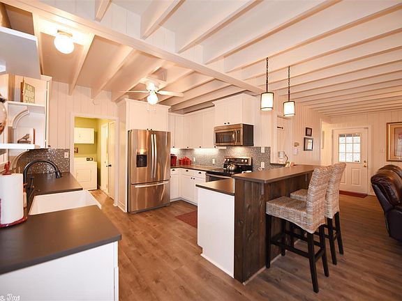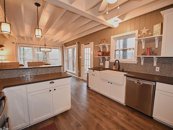 New to the market - Located on "Barefoot Alley", this lakefront home with 2 boat slips (1 with lift) has 3 bedrooms, 2 bathrooms, renovated kitchen with new appliances, native stone fireplace, screened porch, grilling deck, & stone path & steps that lead to the boat dock just below the house. Enjoy watching the sunset while sitting around the fire pit. Furniture (living & dining room furniture are new), decor, linens, dishes - it all conveys, so you can start enjoying your new lake home immediately!