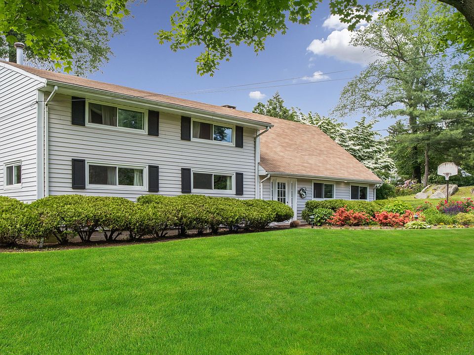 Nestled on a park-like cul-de-sac, this extended cape offers privacy in a tranquil setting. Great curb appeal will welcome guests to your new home. Once inside, foyer opens to formal living with wood burning fireplace, spacious family room and bedroom (currently used as a formal dining room/easy conversion back to bedroom) Plenty of natural light comes through the wall of doors connecting the kitchen and formal living to patio/fenced back yard with 2 sliding doors. Additional bedroom and hall bath complete this level. Second story houses master bedroom, an additional bonus versatile space currently used as a sitting/reading area, bedroom and hall bath. Skylights bring natural light to this level. Welcoming and secluded patio and back yard offers the perfect respite to unwind, relax and take in the beauty of your surroundings. We welcome you to a private tour.