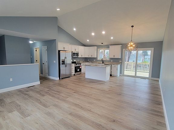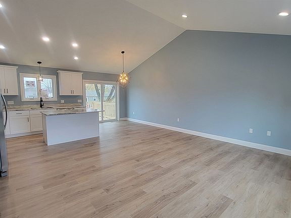 - Features: Vaulted Ceiling(s), Countertops - Stone/Granite/Solid, Kitchen Island, Cabinets - Upgraded, Open Floorplan, Recessed Lighting, Lighting - Pendant
