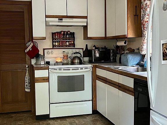 Best Priced Home For Sale in Carver!! Solid Cape Style Home neatly tucked away off the road that consists of 6 rooms, 2 bedrooms, 2 full baths, Loft area overlooking downstairs into the Living room/Dining room area, that could be used for a 3rd Bedroom, Eaves upstairs for additional storage, Full basement w/a 14x16 finished room, FHW/BB Oil Heat, Electric stove, 2 Fireplaces, 1st floor laundry. Cathedral Ceiling in the living room/dining area, New Trek decking, Current Owner has a Licensed Hobby Kennel License, dogs have 3 access to go in and out of the home, one in the master bedroom closet, a doggie run and bulkhead in the basement. Fenced in back yard.