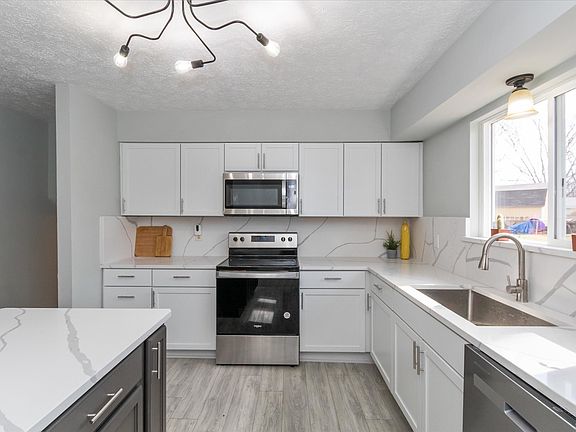 This 4 BR 2.5 BA split level home on a cul-de-sac has been completely gutted and put back like new for under $400,000. Kitchen upgrades: New Island, Cardell cabinets, granite countertops, backsplash, new faucet, disposal, and SS appliances. The primary bath has a new double sink vanity, granite top, ceramic floors, a shower with a frameless door, and new faucet, mirrors, and toilet. The large family room features a new dry bar with a wooden wall, shelves, and mini fridge. Exterior: A new roof, siding, gutters, windows and doors, with a new garage door. Also includes new light fixtures and fans, a new water heater and sump pump. Back yard is fully fenced with extra parking for a boat or RV. There is all new carpet, floors, and paint.