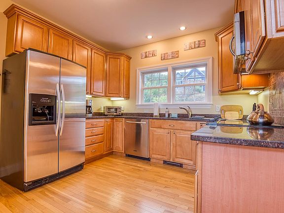 FANTASTIC MOUNTAIN VIEWS FROM THIS WELL-APPOINTED three bedroom, three and a half bath contemporary in super convenient Bartlett location. Open layout with abundant natural light, this 2,700 square foot home offers plenty of space over three levels. The main level hosts a cooks kitchen with granite countertops, maple cabinets, stainless appliances, and hardwood floors that stretch into the airy dining area with cathedral ceilings, direct access to the expansive deck, and views to the Ledges and Moat Mountains. Retreat into the living room with wood fireplace, radiant floor heat, and more views. Main level master suite offers one level living, en suite with full bath, walk-in closet, access to deck, and, of course, those mountain views! The upper level features a sunny loft, two additional bedrooms, and a full bath. The walkout, daylight lower level offers a large family room with access to the backyard, an office/den, a full bath, and large utility room well suited for storage or further expansion. This home provides a balance of style and practicality with a welcoming formal entry with half bath and a separate mudroom entry with radiant floor heat and access to a large walk-in closet. Excellent location, just a short drive to North Conway, skiing, shopping, and trails.