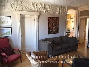 Architecturally significant 2 BR Top floor unit in historic Bellvista Manor on Corey Hill. Freshly painted! This 6 room home designed by HW Longfellow's nephew features exceptionally high ceilings, hw floors, old world decorative plaster moldings and fireplace in LR. The formal DR boasts a spacious china cabinet and the original leather wainscoting. Updated bath & kitchen with granite & stainless. Enclosed bonus sunroom off the EIK. W/D in unit. DEEDED PARKING. Convenient to everything. A truly special home! Off-street parking for rent. 5 minute walk to B Line (Alston stop): 10 min walk to Washington Square: 15 minutes to Coolidge Corner