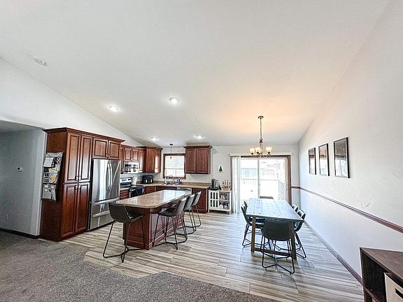 The open concept design of this lovely 5-bedroom, 3-bathroom split foyer home offers a modern spaciousness and flexibility. You are welcomed into the large foyer that opens into the naturally illuminated open floor plan accented with vaulted ceilings and stylish lighting. The convivial kitchen blends marvelous counter space and major appliances. A classic island configuration maximizes workspace and flexibility while boasting gorgeous custom cabinets. The tranquil primary bedroom is a great recharging station for the day. In addition to the convenience of the private bathroom, you will find your dream closet with ample space to let your wardrobe breathe. The other two bedrooms on the main floor are unique and ready to reflect your good taste in decor. The mostly finished basement, with the convenience of a full bathroom and two bedrooms, is currently awaiting your inner household stylist to finalize your new home. It can easily be reconfigured as you please. The sizable, visually appealing yard is fenced in the rear. Barbecuers will gravitate toward the meticulously maintained deck. Dependably crafted of composite materials, this appealing structure is the perfect stage for memorable culinary performances. Like chatting with friends on a cool evening? Because now you've got a stone fire pit. This home also includes a dog run for your convenience. The driveway has ample accommodations for visiting vehicles and leads to an attached three-car garage that is insulated for our cold winter days. From its large yard, located on a quiet, low-traffic street lined with sidewalks, the home is a mere stroll from the recreational opportunities found in the neighborhood park. This lovely dwelling is a rare charmer and checks your "must have" boxes!
