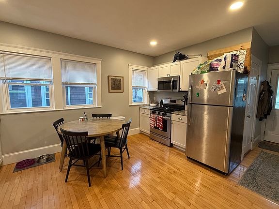 Bright and renovated 2 bedroom apartment in the Tufts area of Medford available for July 1st (7/1/2025). Unit features large entryway, hardwood floors, open living/dining floorplan, recessed lighting, nice kitchen with stainless appliances and stone countertops. Private porch, shared yard, 1 parking spot in shared driveway, laundry in the basement. Call/text/email for private showing today! tenant pays heat, hot water, and electricity. Tenant responsible for move-in fees: first month's rent, last month's rent, security deposit, broker fee