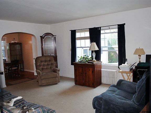 This North Colonie Cape is much bigger then it looks-2025 Sq.Ft.! 3 bedrooms and 2 full baths, eat in kitchen and second floor family room; updated windows & hardwood under carpet. Charming pocket door closes off large kitchen from dining room. Easy access to major highways and schools.