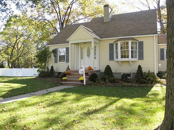 Charming 3+ Bedroom Cape w/brand new septic, freshly painted bedrooms,den and basement..Terrific backyard w/ ingrnd pool, newer appliances & gorgeous tree-lined street! Home is has hardwood floors first floor -formail dining room- eat-in kitchen - huge basement completely painted w/great potential for finishing - 2 car garage - fenced in yard - vinyl siding and window updated.