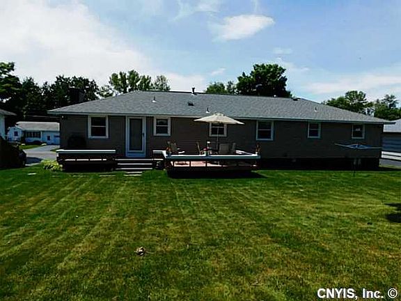 Spacious quality-built home that sits on quiet dead end street. This well maintained ranch is freshly painted & truly move in ready! Many updates include new roof, siding & windows. This 3 bedroom home offers an oversized family room complete with wood burning stove. Kitchen opens to parlor and large living/dining room with hardwood floors and crown molding. Large backyard has an outdoor fireplace, deck & covered wood shed. Solvay Electric keeps utility costs low! Many possibilities for the full unfinished basement. Lots of closets & storage. All appliances stay!