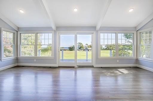 Located in 60+/- acre Birchfield Farm, of which approx 20 acres are in conservation. Residents enjoy private beach, dock & float, open fields, stone walls and a quiet coastal/farm atmosphere, just 1 mile south of Padanaram Village. This total gut renovation is sited high above the flood plain on 2+ acres with sweeping views to harbor & Buzzards Bay. A large bedroom suite with tile bath & spacious walk-in closet is located on main level, allowing "living on one level". The main level open floor plan also provides dining room with fireplace, open kitchen with spectacular views, separate sun / breakfast room & a large living room featuring fireplace, wall of glass facing the water, high ceilings & access to the expansive deck. A laundry room, 1/2 bath & ample storage complete the main level. Lower level features two good sized bedrooms, full bath, family room/office & large room with fireplace, water views & direct access to private patio. Wine & Cheese OPEN HOUSE SAT NOV 10th 1PM - 3PM