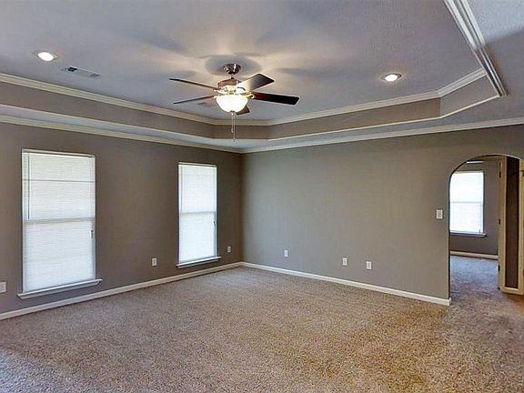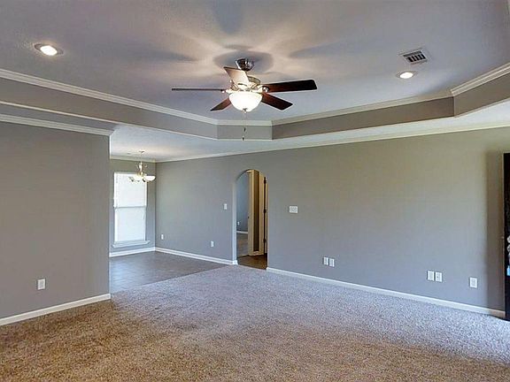 Best Buy 4 bedroom house around. Tile and Taverntine walk-in shower is really amazing. Big walk in closet. Kitchen has tons of cabinets. Almost completely privacy fenced yard. Split plan with boxed ceiling and recessed lighting. Previously wired for surround sound. Crown in master is wired for individual rope lighting in the boxed ceiling. Full laundry room. Two car garage with auto opener. The works. Perfect for the growning family and 100% RD Financing Eligible. Call to see this one today.